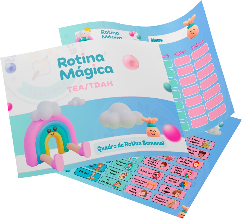 😫 Antes: Cada troca de atividade era guerra e choro. 🌈 Depois: Seu filho entende o que vem a seguir e tudo flui em paz.